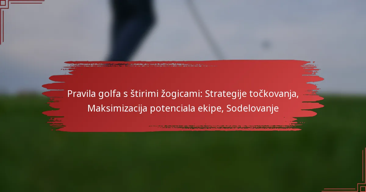 Four Ball Golf je privlačna ekipaška oblika, kjer se dva igralca pomerita proti drugemu paru, pri čemer vsak igralec igra svojo žogo. Ekipaški rezultat za vsak hole se določi na podlagi nižjega rezultata dveh igralcev, kar poudarja sodelovanje in strategijo. Učinkovita komunikacija in jasno razumevanje moči vsakega igralca sta ključna za maksimiranje uspešnosti in dosego uspeha na igrišču.
